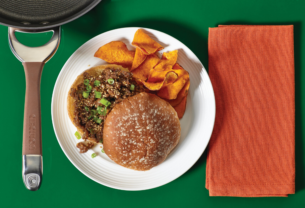 - Combine the jam, hoisin sauce, soy sauce, chili-garlic sauce and brown sugar in a small bowl. Add the mixture to the beef and cook, stirring occasionally, until it is slightly thickened, 2-3 minutes. Remove from the heat and stir in the scallions and sesame seeds. Spoon the beef mixture on each of 4 potato rolls and garnish with additional sliced scallions and sesame seeds if desired.