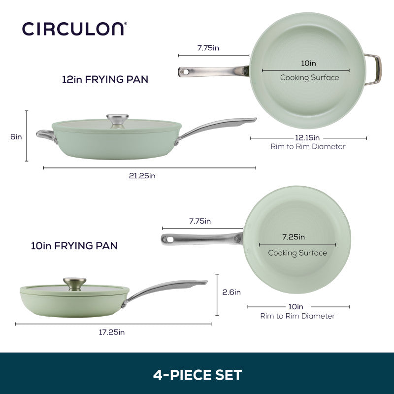 SET INCLUDES: 10-inch frying pan with lid, 12-inch frying pan with lid and helper handle