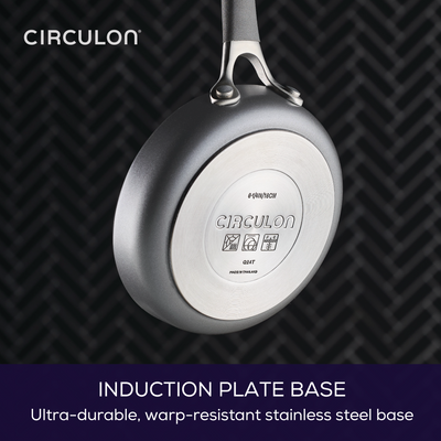From the inventors of hard-anodized nonstick cookware comes Circulon ScratchDefense™. Open up a new dimension in scratch resistance and unbeatable nonstick performance and longevity with ground-breaking ScratchDefense™ nonstick technology that applies aerospace-grade durability to eliminate scratching, sticking, and flaking for our most advanced nonstick yet. Cook with complete confidence using this dishwasher-safe 10-inch frying pan with a triple-layer nonstick cooking surface that lasts 130X longer than the competition and stands up to laboratory tests simulating 200+ years of daily wear and tear. An aluminum core delivers fast, all-over heat delivery and a thick, induction-suitable stainless steel base boosts durability and heat retention. Circulon ScratchDefense™ - EXTREME NONSTICK THAT WON’T SCRATCH. EVER.