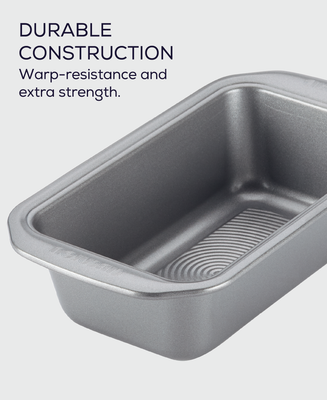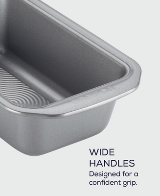 From breads to meatloaf, let deliciousness rise with the nonstick baking and easy cleaning performance of this durable, reliable loaf pan. Raised circles on the baking surface are coated with premium-quality nonstick and wide handles for plenty of grip, even with bulky oven mitts on.