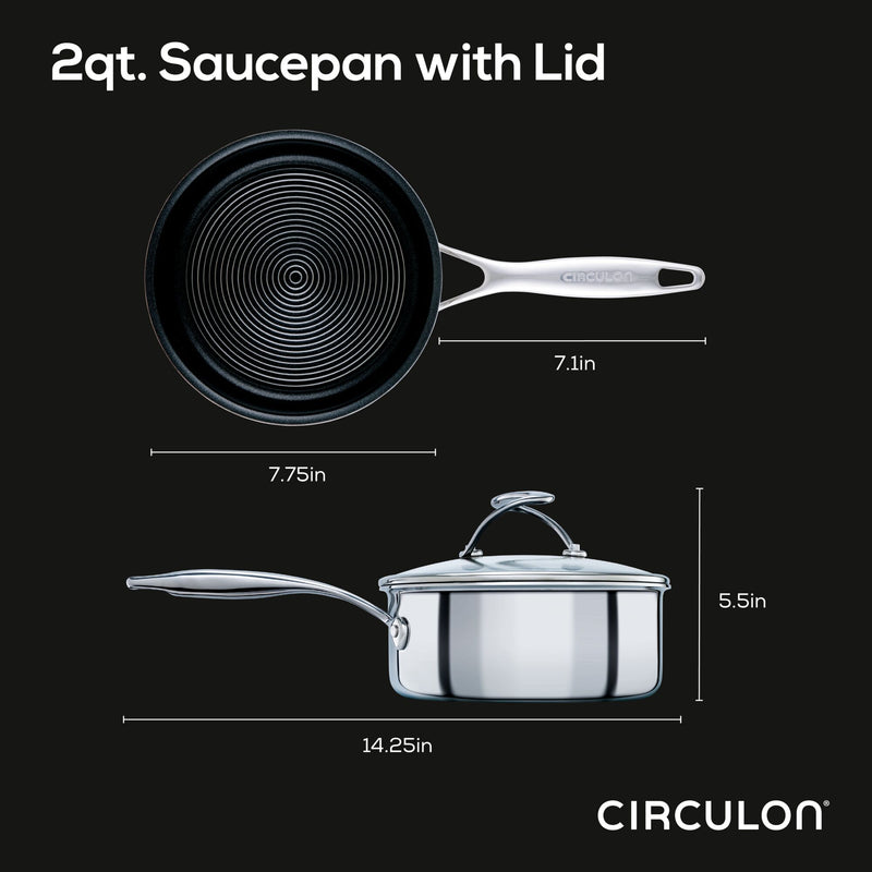 - (1) 2-Quart Hybrid Stainless Steel Nonstick Saucepan, (1) Glass Lid
