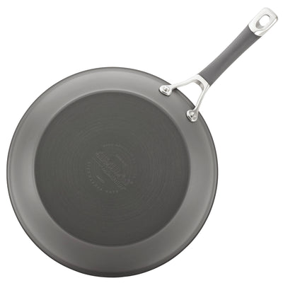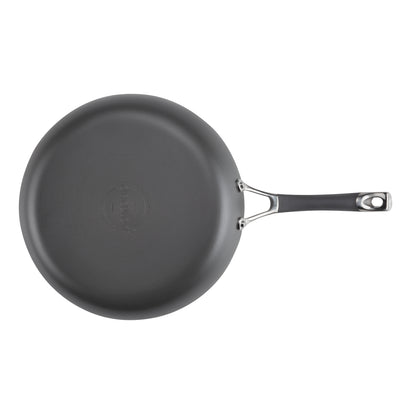 For an easy one-pan-meal solution that helps you cook smarter, reach for this versatile large frying pan crafted from super-tough, hard-anodized aluminum that's twice as strong as stainless steel for lasting cooking enjoyment. The deep pan boasts the TOTAL Nonstick System of raised circles and triple layer, premium quality nonstick for long-lasting food release and easy cleanup. Higher skillet walls transfer heat evenly and a dual-riveted stainless steel handle with a sleek silicone grip provides a solid, comfortable hold while cooking and serving. Oven safe to 400°F.