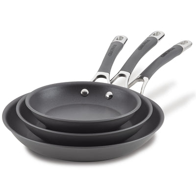 Sleek and stylish, these hard-anodized nonstick frying pans deliver modern sophistication with durability and performance. Safe for use on all stovetops, including induction, the fry pans feature the TOTAL Nonstick System of raised circles and triple layer, premium quality nonstick for long-lasting food release and easy cleanup. Oven safe to 400°F and conveniently dishwasher safe.