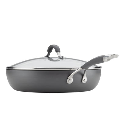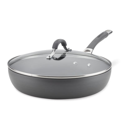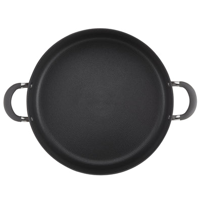 Sizzle, sear, and simmer with an essential deep frying pan featuring heavy-duty hard-anodized construction and the TOTAL Nonstick System of raised circles and triple layer, premium quality nonstick for long-lasting food release and easy cleanup. Deeper cookware profile for big one pan recipes. Dishwasher safe for easy cleanup and oven safe to 400°F.