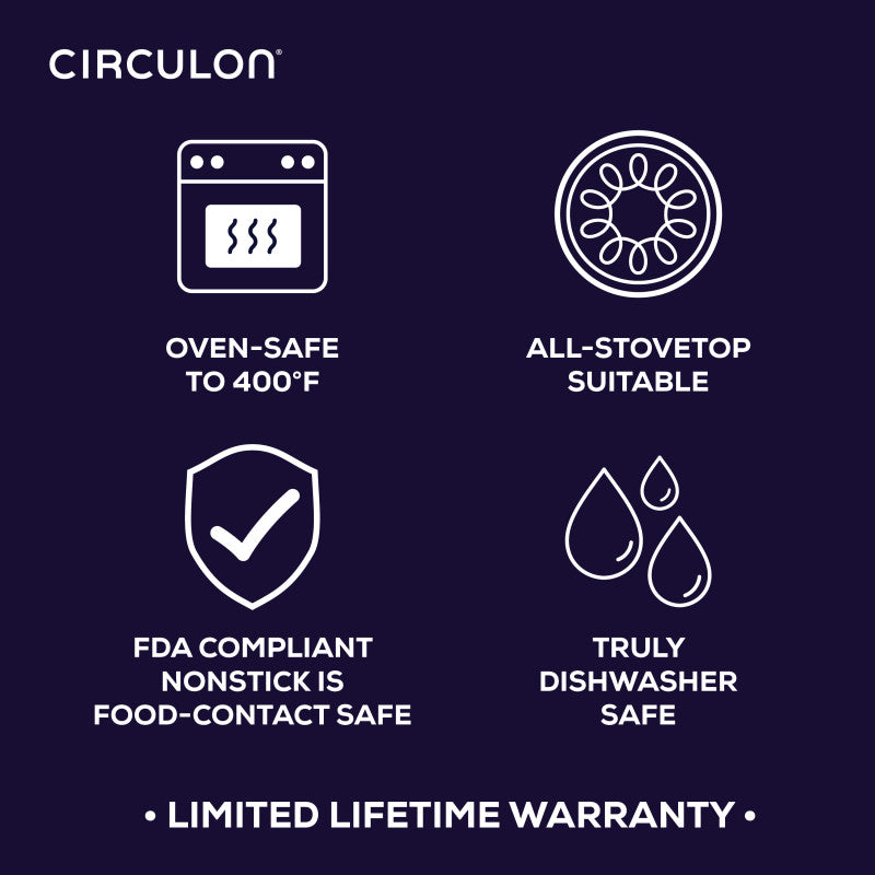 Circulon ScratchDefense™ is our best nonstick yet and is manufactured and inspected to ensure high-quality standards. We are confident in our product, and if it does not fulfill your expectations, we promise the original purchaser a full refund of a qualifying purchase of Circulon ScratchDefense™ during the lifetime of the product, subject to the terms and conditions specified in the guarantee. Find more details at https://circulon.com/pages/limited-lifetime-warranty
